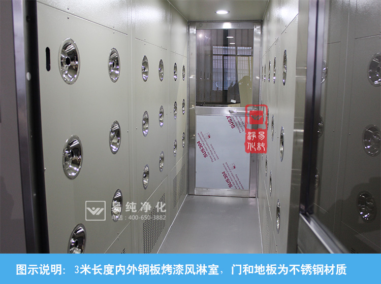 1. 外型尺寸:一般3米以上稱之為風(fēng)淋通道,亦稱風(fēng)淋走廊,可以是5米,6米,甚至是更長(zhǎng);