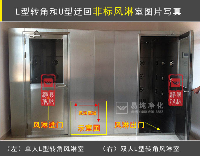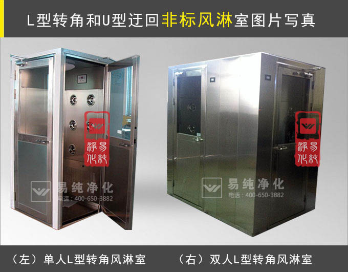 三、L型異形風淋室有轉(zhuǎn)角風淋室、一進二出風淋室、一進三出風淋室、U形風淋室、S形風淋室、L形風淋室等,都是應客戶現(xiàn)場場地要求非標訂做,滿足潔凈室要求,更加合理地減少企業(yè)的費用。