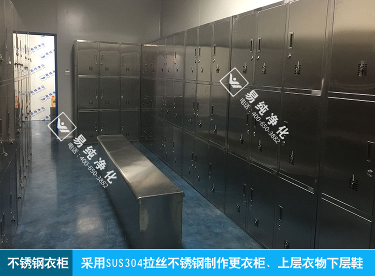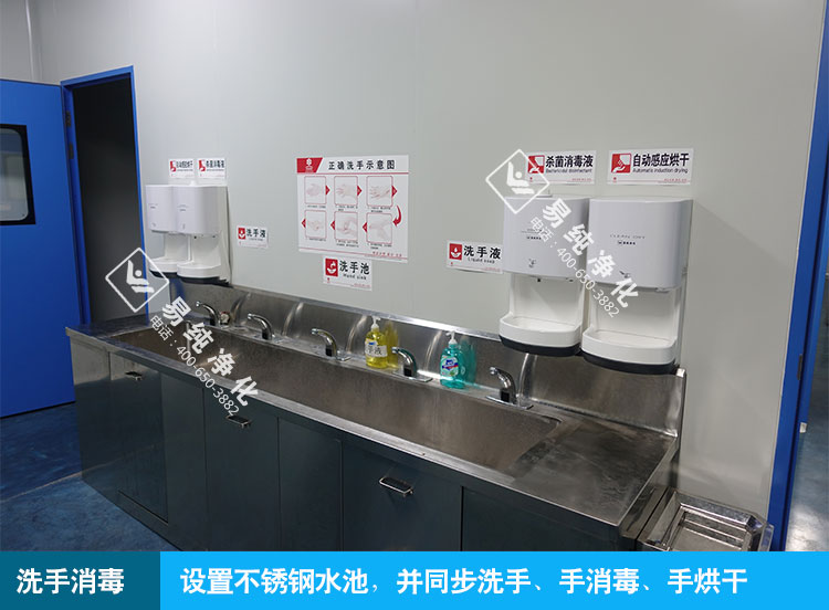 3 最后一道程序?yàn)?a title="風(fēng)淋室" href="http://www.szjuchen.com.cn/" target="_blank" textvalue="風(fēng)淋室">風(fēng)淋室,風(fēng)淋機(jī)采用不銹鋼成品設(shè)備,要求同班次員工5 分鐘內(nèi)能夠全部通過(guò),風(fēng)淋機(jī)的長(zhǎng)度應(yīng)根據(jù)員工數(shù)量及單次風(fēng)淋時(shí)長(zhǎng)進(jìn)行計(jì)算,合理選用。風(fēng)淋機(jī)一側(cè)應(yīng)設(shè)下班員工專用通道,這樣可避免換班人流的交叉,提高換班通行效率。由于國(guó)家規(guī)范及行業(yè)標(biāo)準(zhǔn)無(wú)對(duì)此類房間的設(shè)計(jì)要求,筆者根據(jù)工作經(jīng)驗(yàn),推薦設(shè)計(jì)人員按照以下標(biāo)準(zhǔn)進(jìn)行設(shè)計(jì):換鞋間0.1~0.2 ㎡/人,一次更衣室0.8~1.2 ㎡/人,二次更衣室0.2~0.3 ㎡/人,衛(wèi)生間大、小便器15~20 人/個(gè),淋浴位15~20 人/個(gè),手部消毒池水龍頭10~15 人/個(gè)。