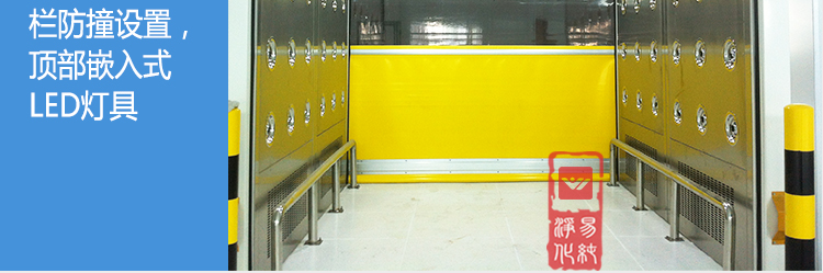 雙門互鎖風淋室快速卷簾門,專門為潔凈凈化車間使用,防止室內外的空氣相互流通以及除去物體表面的灰塵,避免將污染源帶入到潔凈車間中去。快速門為空間狹小的物流通道設計,內置型馬達不占用安裝空間,滿足特殊場地需要。門簾由較輕的織物及鋁制抗風肋條組成,提升速度快、安全可靠,出入方便,防蟲,防塵。