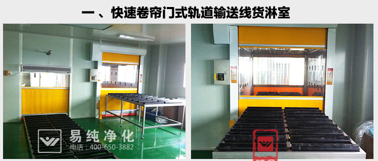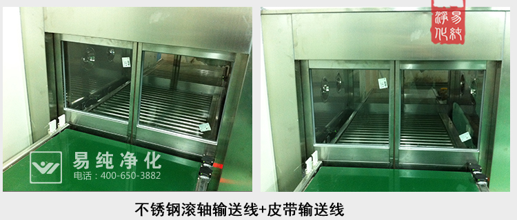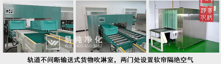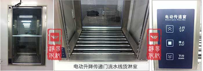 3、電動升降門貨淋室(門為電動控制上下升降),流水線被截斷成三部分,分別為潔凈區(qū)外,貨淋室內(nèi),潔凈區(qū)內(nèi);