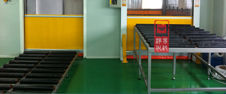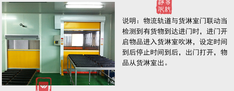 4、快速卷簾門流水線貨淋室(自動感應(yīng)控制快速卷簾門),流水線可做成整體一條線,門下降時接近流水線,也可將流水線分成三部分;