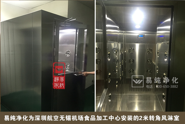 也許我們很想了解一下,航空食品的生產是否和普通企業的生產類似,是否也有著嚴格的產品質量和衛生管理呢。日前,我司為深圳航空公司無錫碩放國際機場深航食品加工中心安裝了2臺風淋室。所有工作人員要進入食品加工中心作業之前都需要先經過更衣室,洗手消毒、然后進入風淋室進行吹淋,在吹淋步驟完成之后方可進入到車間,這樣用風淋室強制吹淋,將員工身上表面脫落的毛發、灰塵吹落吸收掉,防止和杜絕將污染源帶入到食品加工中心。